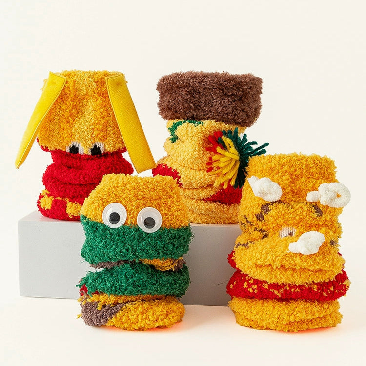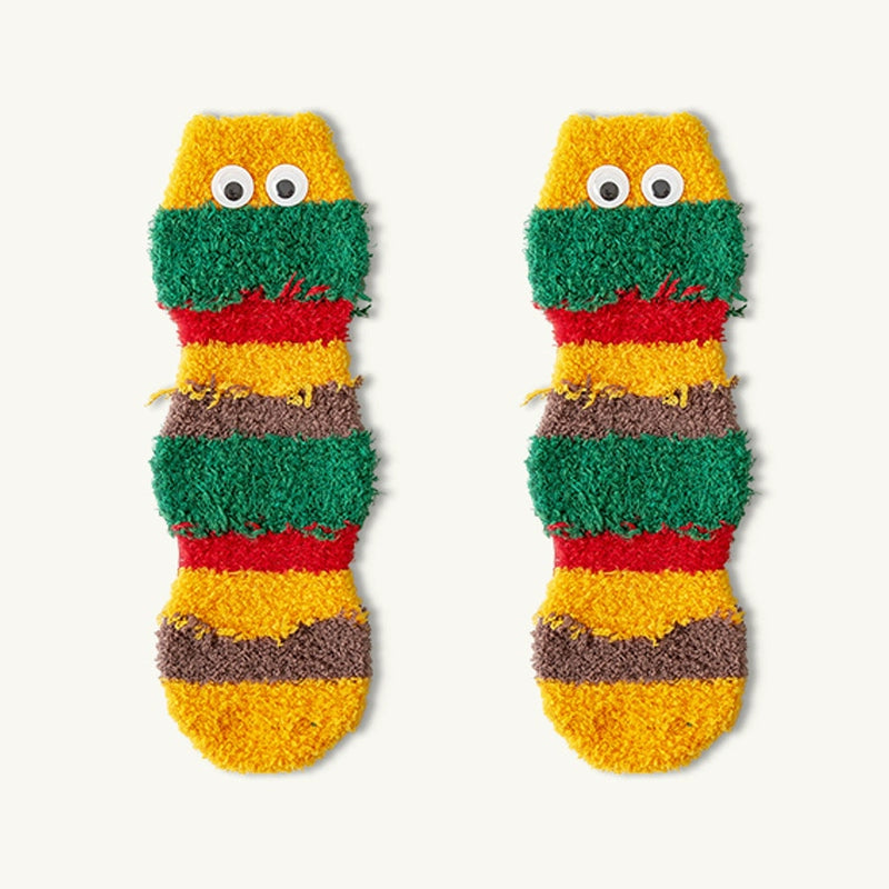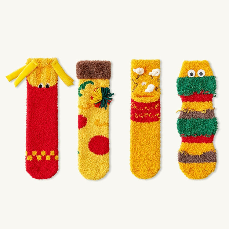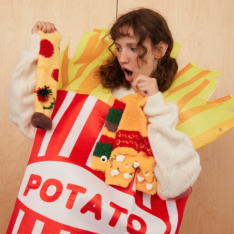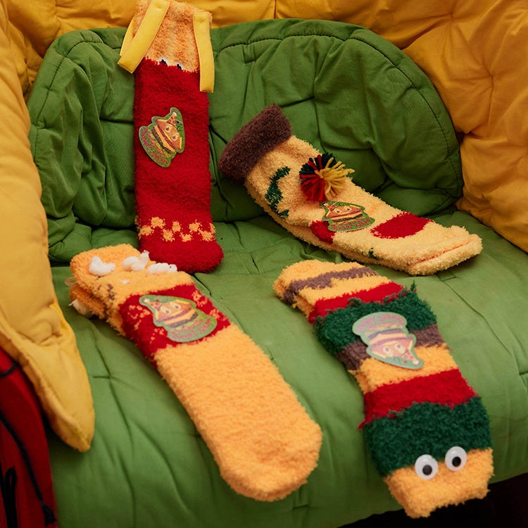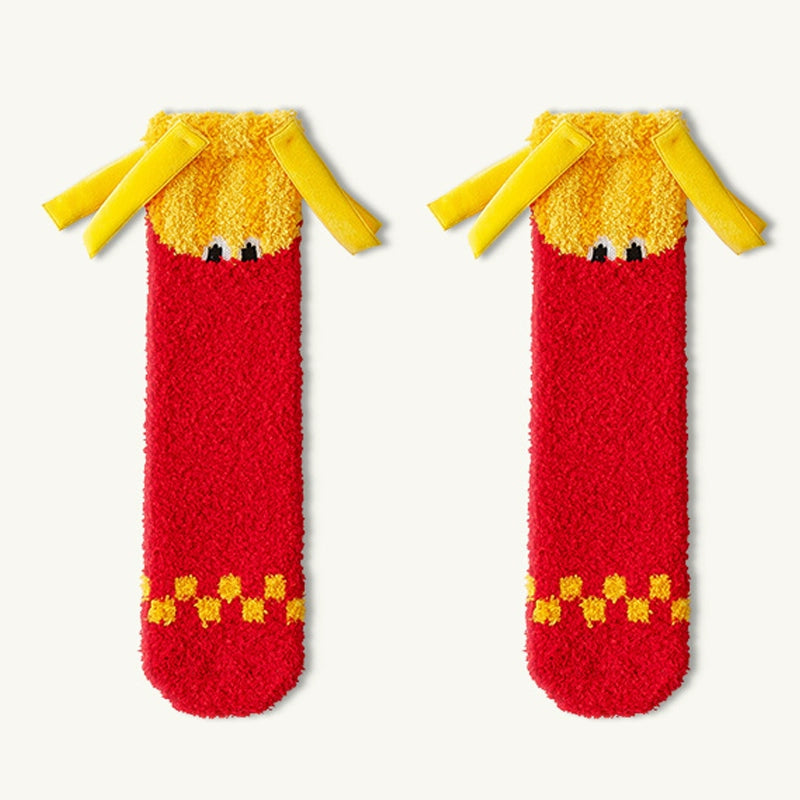 Women's funny coral fleece thick warm calf socks X Happy Potato Burger