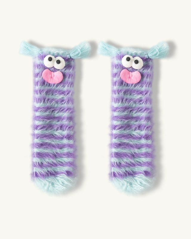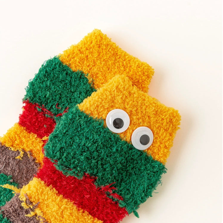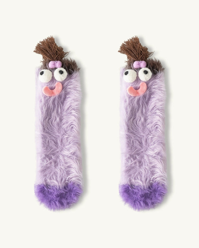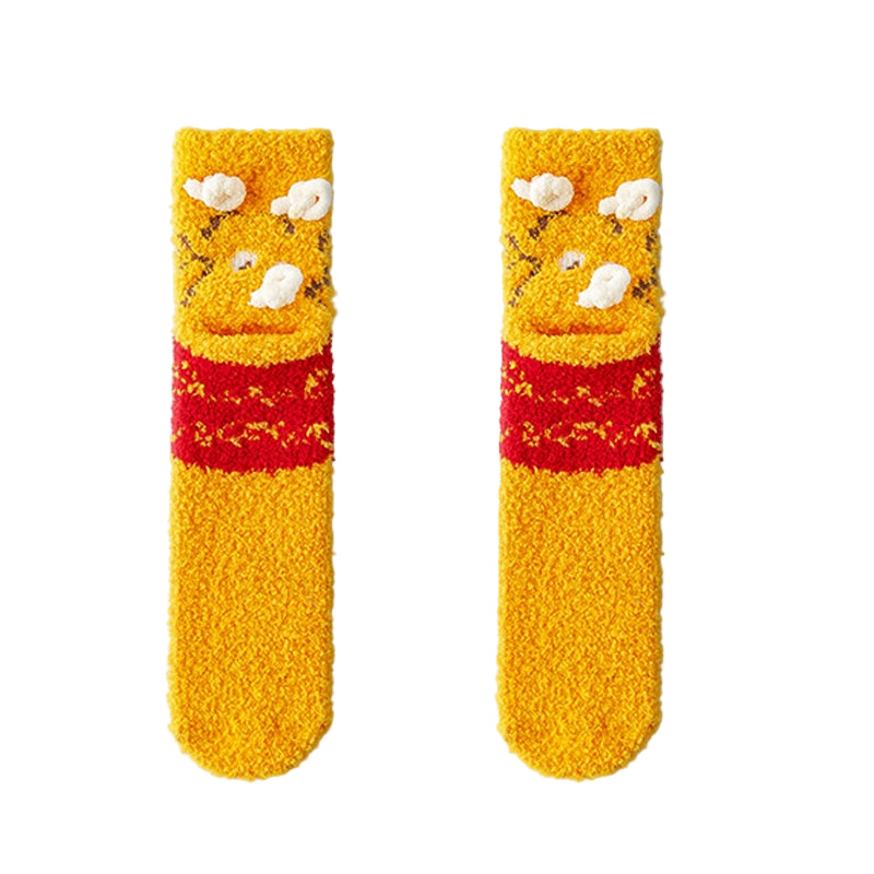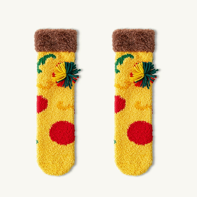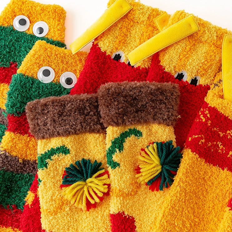 Women's funny coral fleece thick warm calf socks X Happy Potato Burger