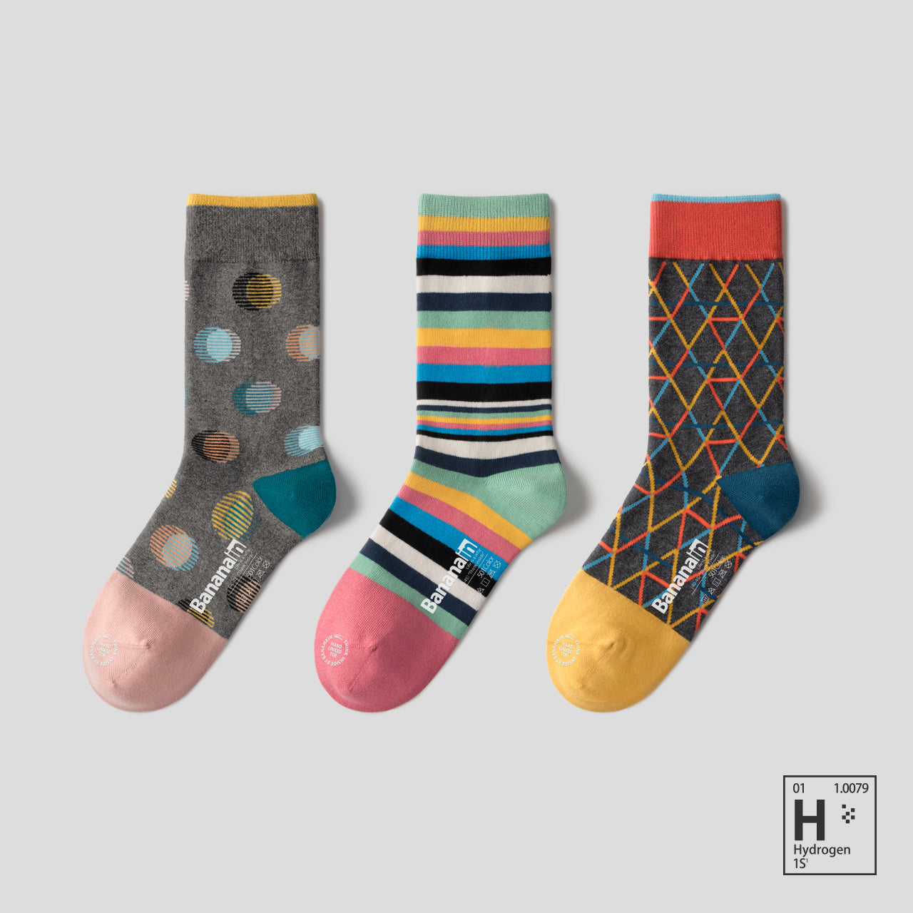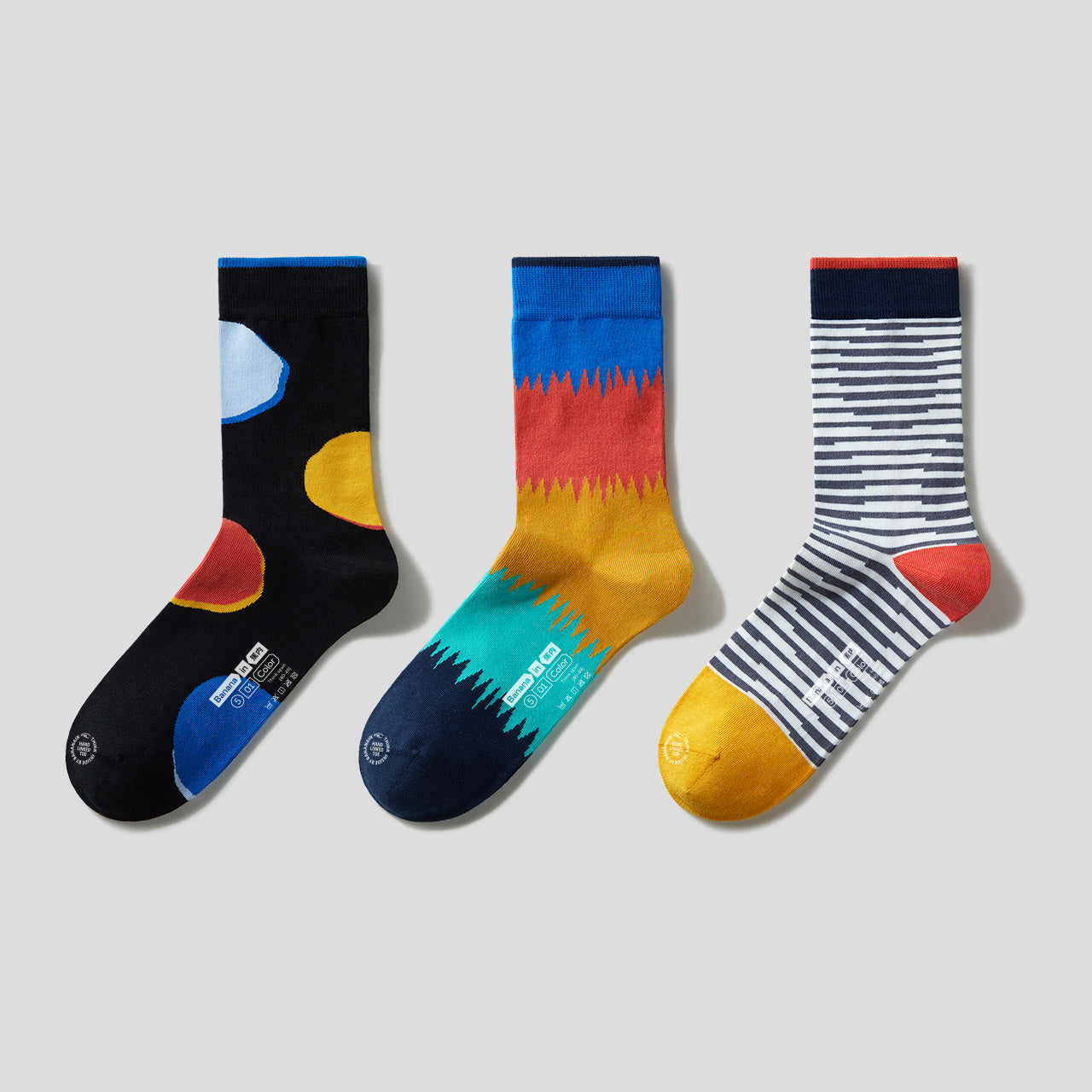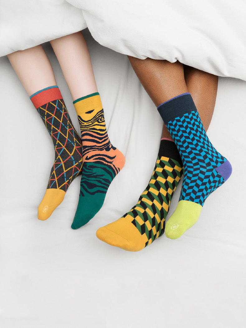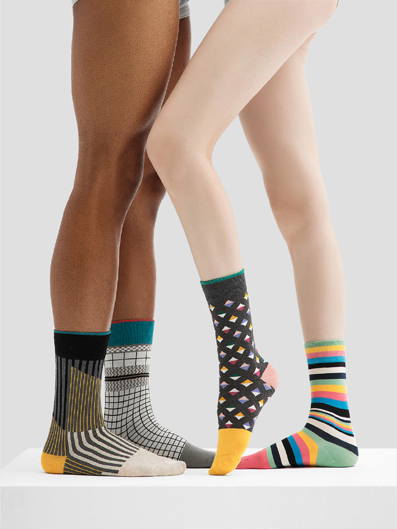 501C geometric couple mid-tube socks-3 pairs