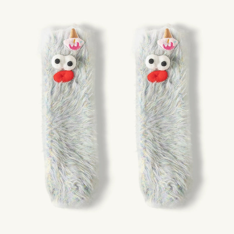 Women's funny coral fleece thick warm calf socks X Soft Milk Cake