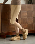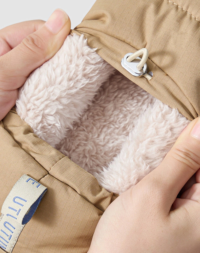 These cotton-padded shoes can be worn outside. The down fabric upper is windproof, waterproof, and easy to clean. The drawstring at the shoe collar easily pulls for a snug, comfortable fit. Every step is protected by spring-like warmth, ensuring comfort and freedom from restraint.